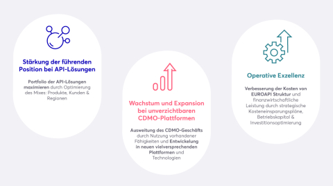 Mit einem erwarteten Umsatz von etwa 1 Milliarde Euro im Jahr 2022 wird EUROAPI die Nummer 1 bei APIs für kleine Moleküle sein, und unsere starken Innovations- und F&E-Kapazitäten ermöglichen es uns, unsere Entwicklung in komplexeren Molekülsegmenten durch CDMO zu beschleunigen.