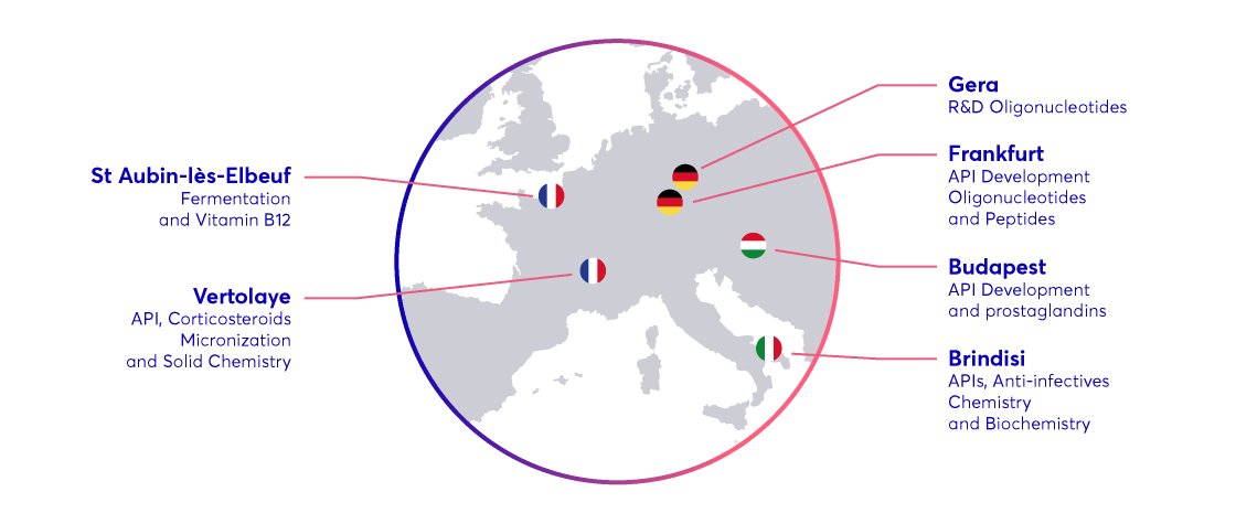 - Organic synthesis (large-volume corticosteroids & hormones) : High potency products (OEB5), State-of-art sewage station