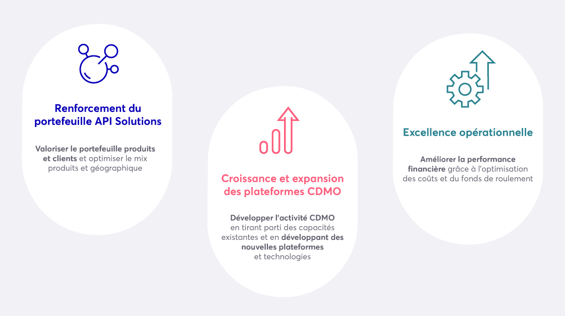 Avec un chiffre d'affaires d'environ 1 milliard d'euros en 2023, EUROAPI se classe au premier rang des API à petites molécules. Nos fortes capacités d'innovation et de R&D nous permettent d'accélérer notre développement dans des segments de molécules plus complexes grâce à nos activités CDMO.